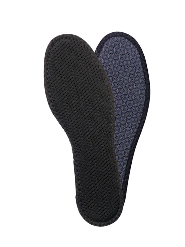 При изготовлении стелек используется полиэфирная ткань, конструкция последней обеспечивает хорошую проходимость воздуха и способствует уменьшению влажности в обуви. Прослойка угольного фильтра абсорбирует неприятный запах, а слой латексной пены придает хорошую амортизацию при ходьбе.