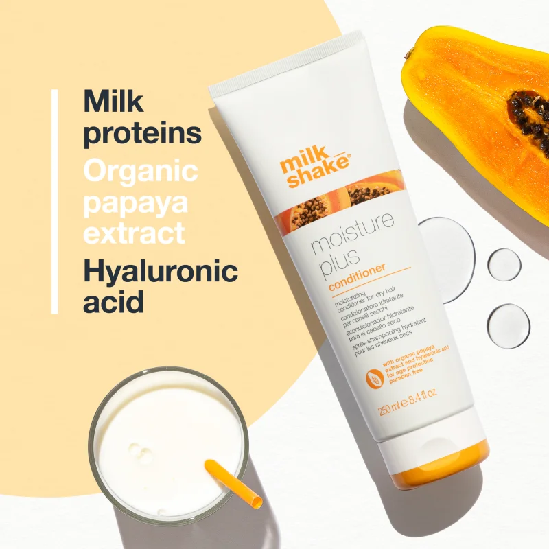 Побалуйте свои волосы индивидуально подобранным уходом. Кондиционер для увлажнения сухих волос Milk Shake Moisture Plus насыщает их влагой, смягчает, а также заботится о сияющем цвете. Экстракт папаи и гиалуроновая кислота превратят до сих пор обезвоженные волосы в невероятно мягкие, упругие и готовые к созданию любой прически.