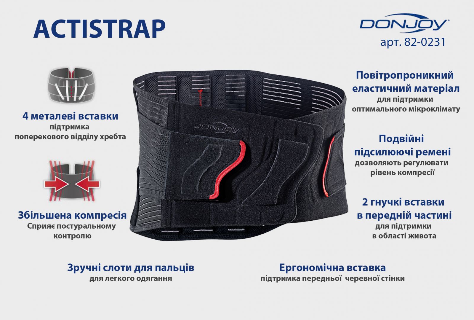 Описание Полужесткий пояснично-крестцовый корсет DonJoy Actistrap