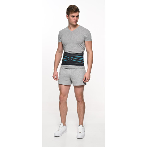 Предназначен для средней фиксации и разгрузки поясничного отдела позвоночника, для профилактики и медицинской реабилитации больных радикулитом, при заболеваниях в результате травм, ударов, воспалениях, предотвращает перегрузку мышц, а также при ущемлениях нервов и смещениях позвонков. Произведен из особо крепкой и надежной эластичной ткани. Имеет 6 ребер жесткости, плотно прилегающих к телу в области поясницы. Дополнительные затяжки предназначены для удобства и регуляции нужного натяжения.
