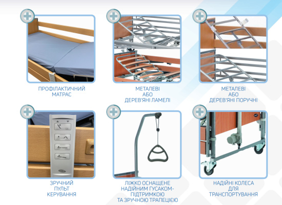 - как сам пользователь, так и ухаживающие, могут менять углы наклона секций кровати отдельно, а также менять высоту всей плоскости кровати в целом;