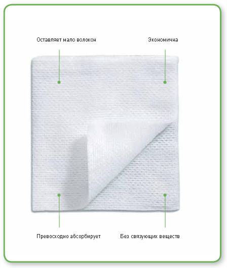 - Оставляет значительно меньше волокон по сравнению с традиционной марлей.