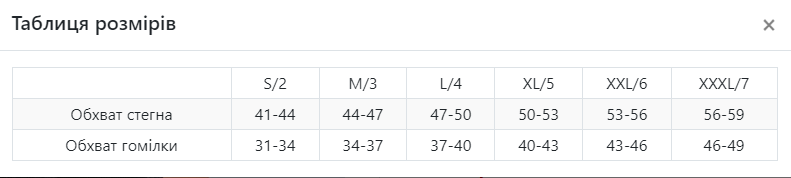 | Обхват голени | 28-31 | 31-34 | 34-37 | 37-40 | 40-43 | 43-46 | 46-49 |