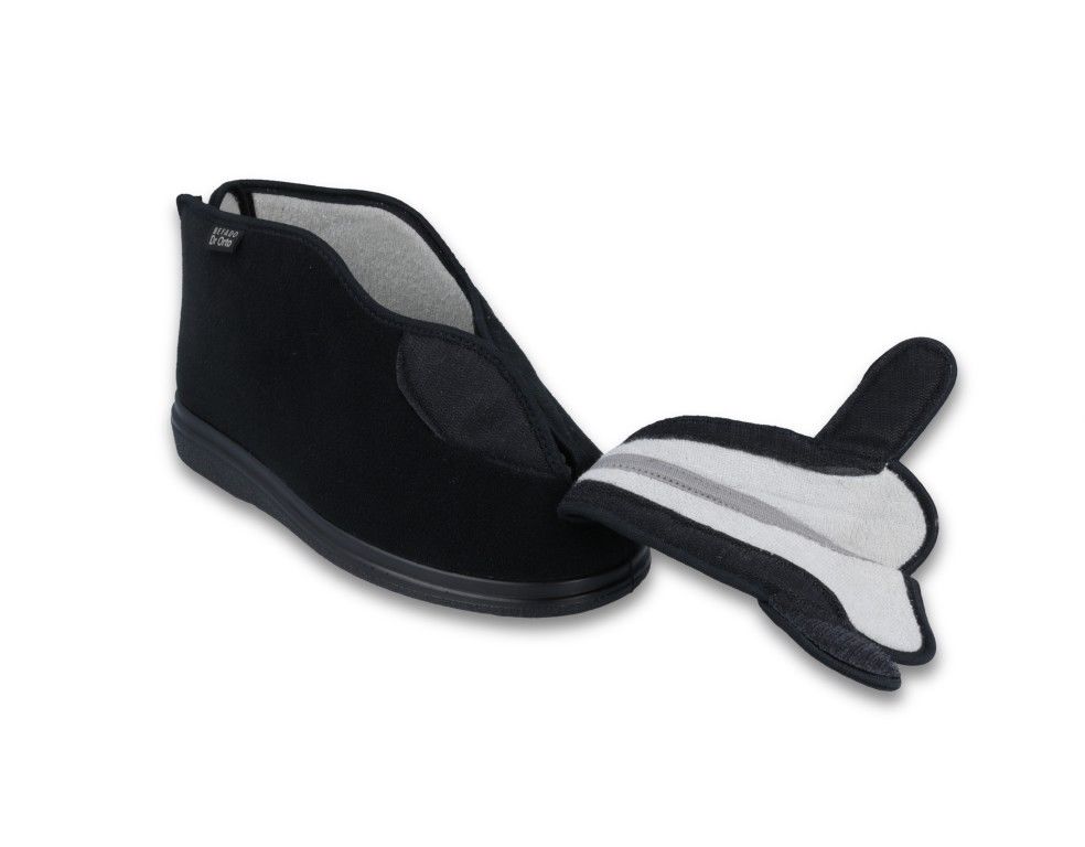 Ортопедические ботинки DrOrto 987 D 002 рекомендованы людям с чувствительными и проблемными стопами. Данную модель можно раскрыть полностью с разных сторон, приспособить ботинки к разной полноте ноги. Поэтому ботинки будут комфортными для людей с деформациями пальцев ног, а также при сильных опуханиях. Сведенное к минимуму количество швов и соединений делает ношение обуви приятным и безопасным.