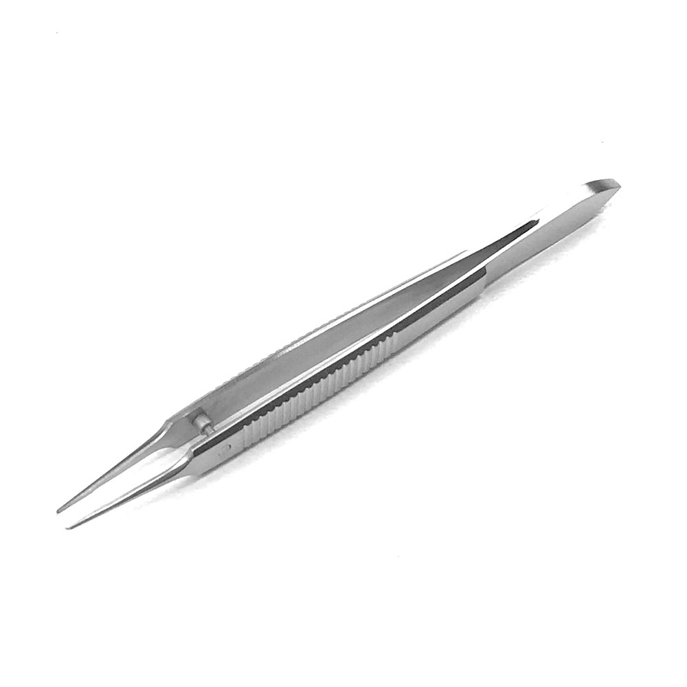 Описание Шинный пинцет Surgiwelomed по Castroviejo, с уловом, 1x1 зубцы. Длина 9 см