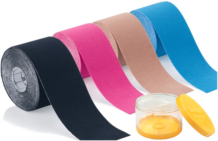 - Каждый кинезио тейп имеет пластиковую практическую упаковку и содержит инструкции с примером того, как наносить ленту