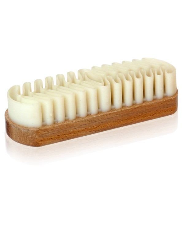 Большая деревянная ручка очень удобна для чистки обуви. Мягкая креповая «щетина» используется для чистки и пуха ворса на замше и нубуке, аккуратно очищает волокна.