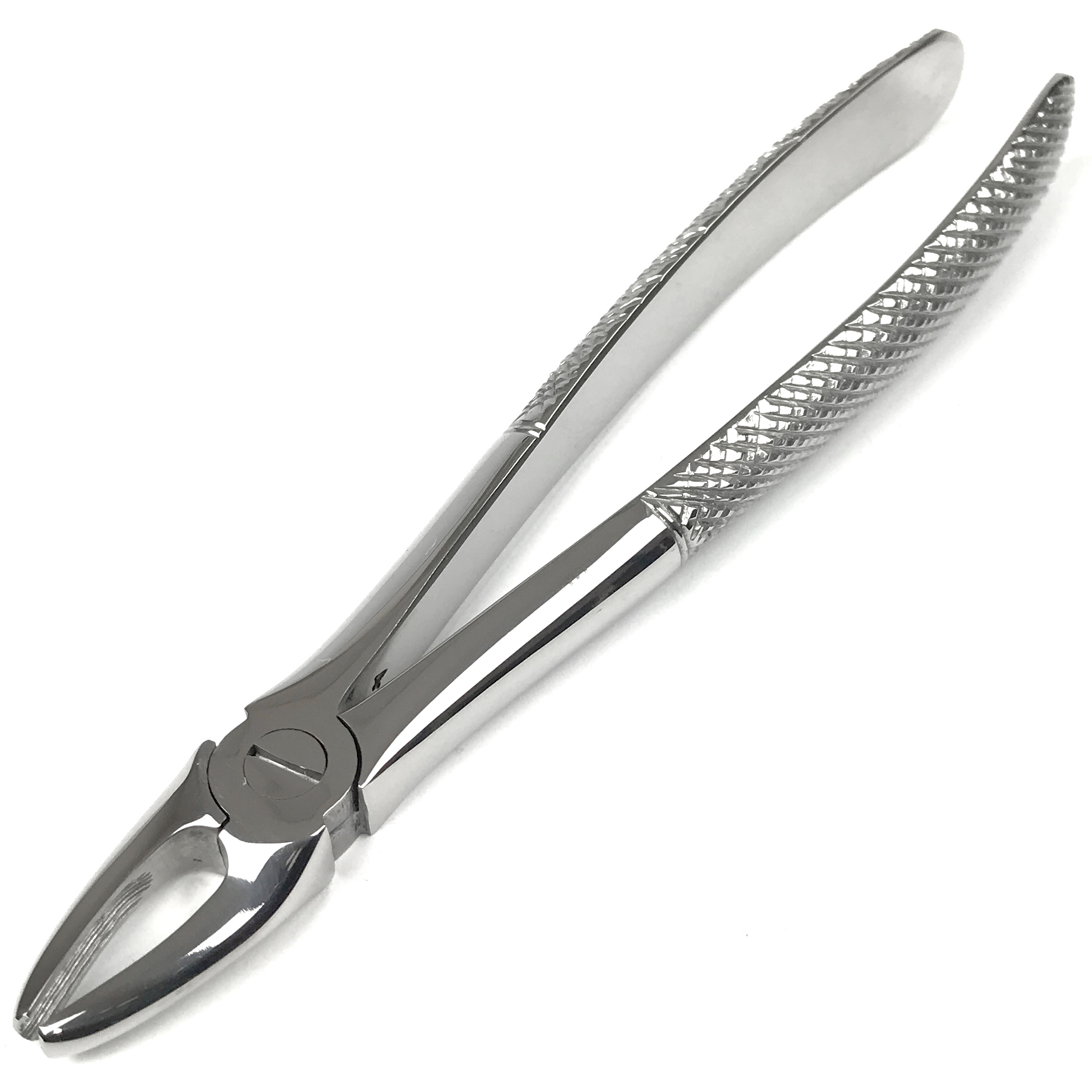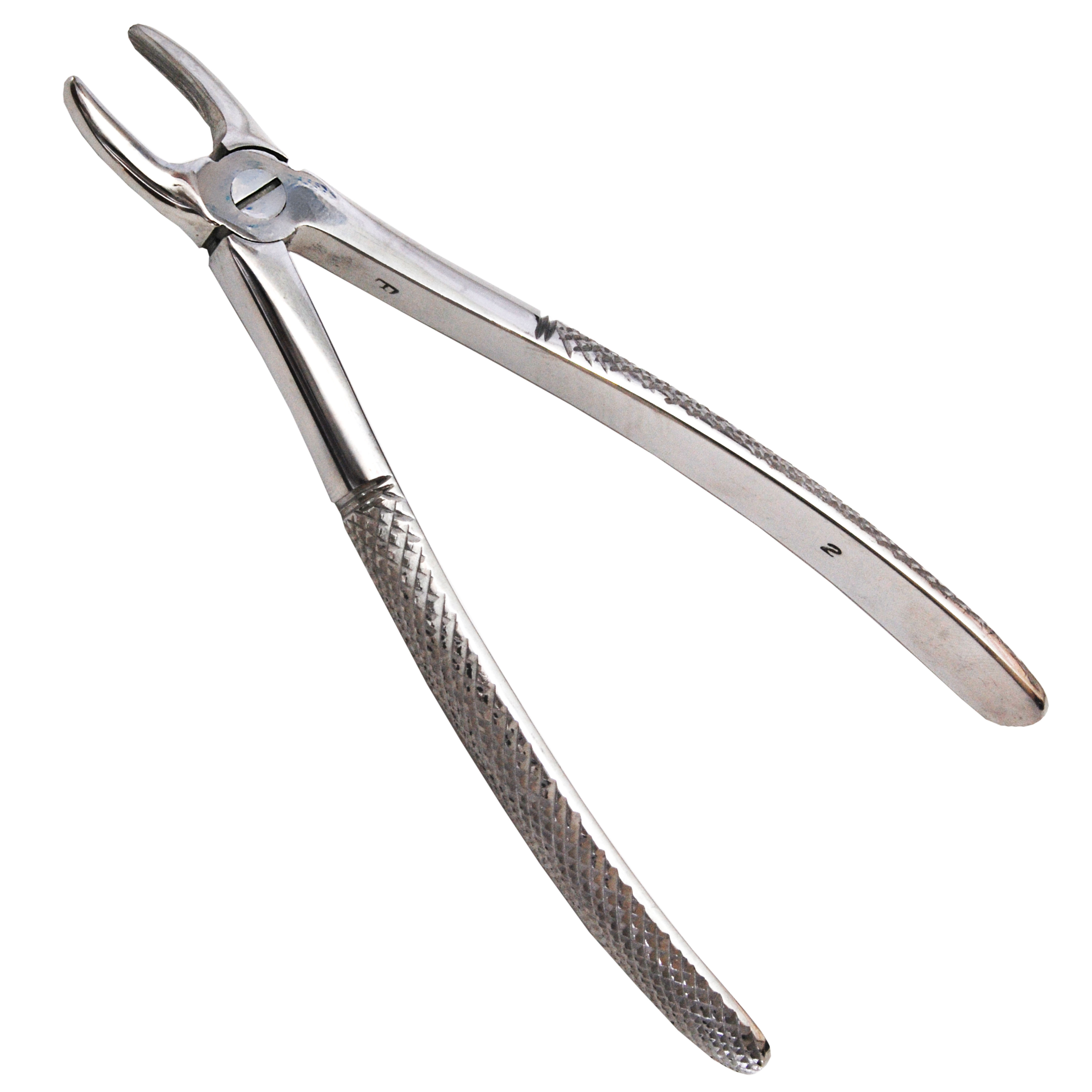 Описание Щипцы для удаления резцов и клыков верхней челюсти №2. Длина 17 см, ширина 6 мм.