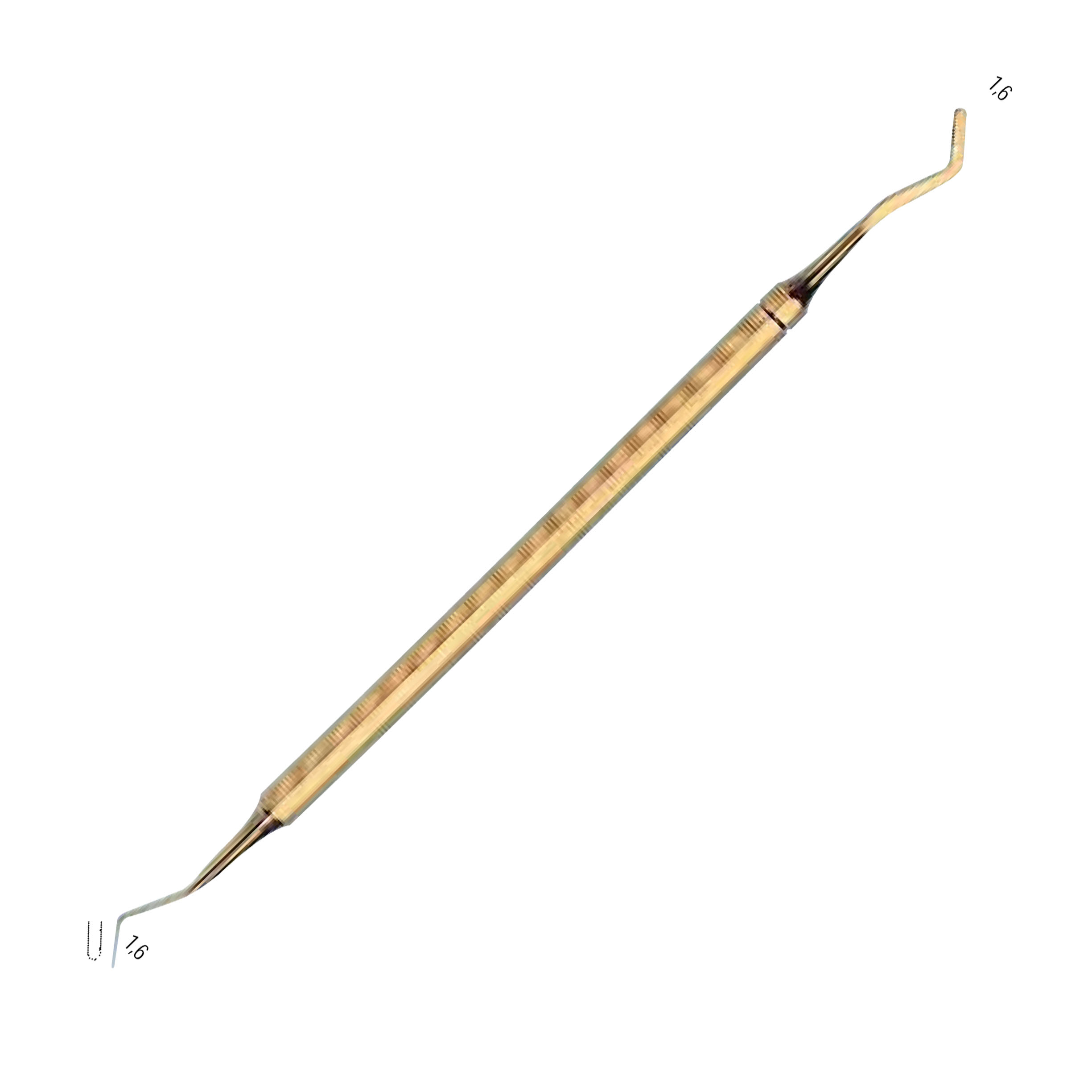 Шпатель стоматологический, двусторонний, гибкий, с восьмигранной ручкой, серповидный и дистальный, покрытый оловом, очень тонкий SURGIWELOMED.Длина 17,5 см, Ширина 1,6 мм