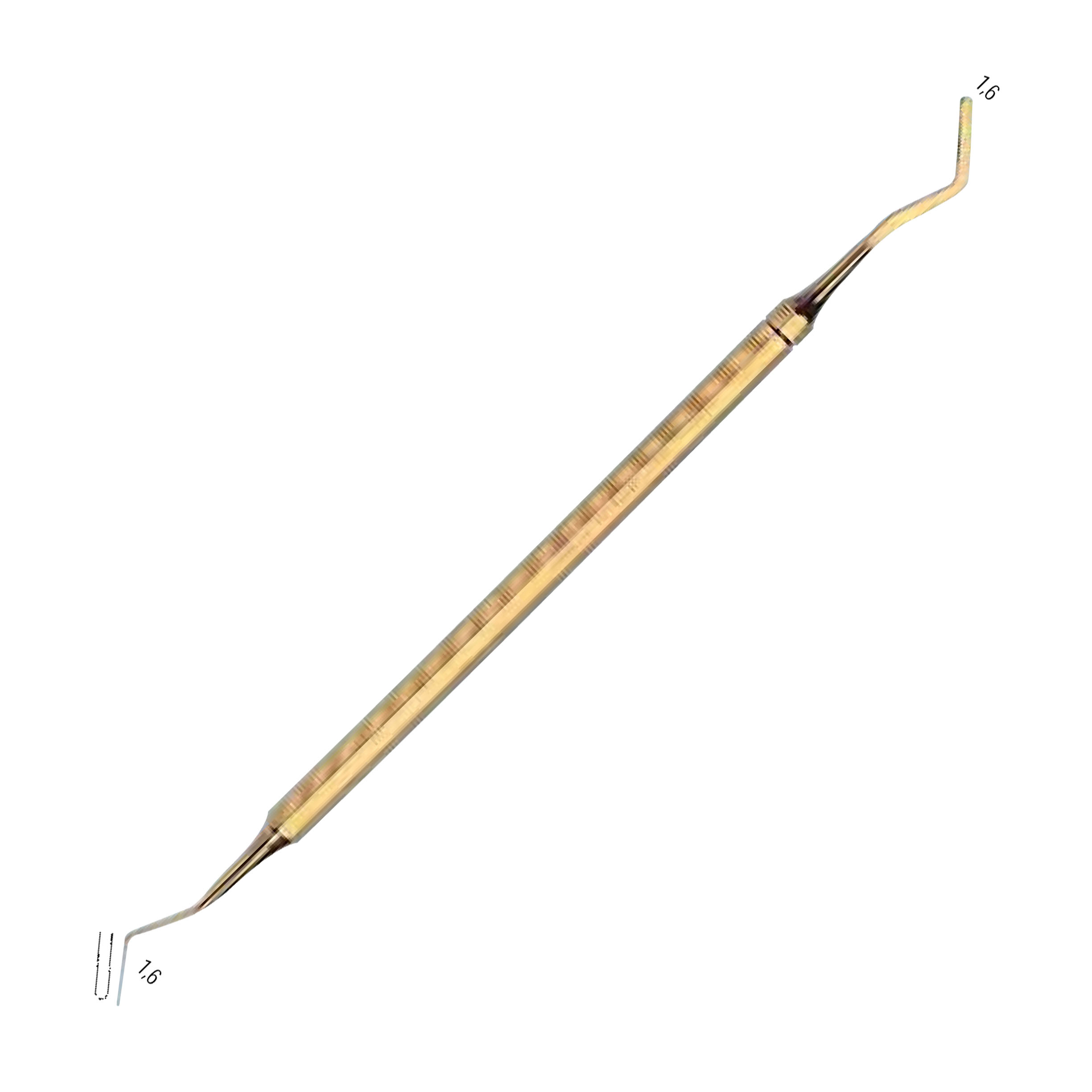 Шпатель стоматологический, двусторонний, гибкий, с восьмигранной ручкой, серповидный и дистальный, покрытый оловом SURGIWELOMED. Длина 17,5 счм. Ширина 1,6 мм.
