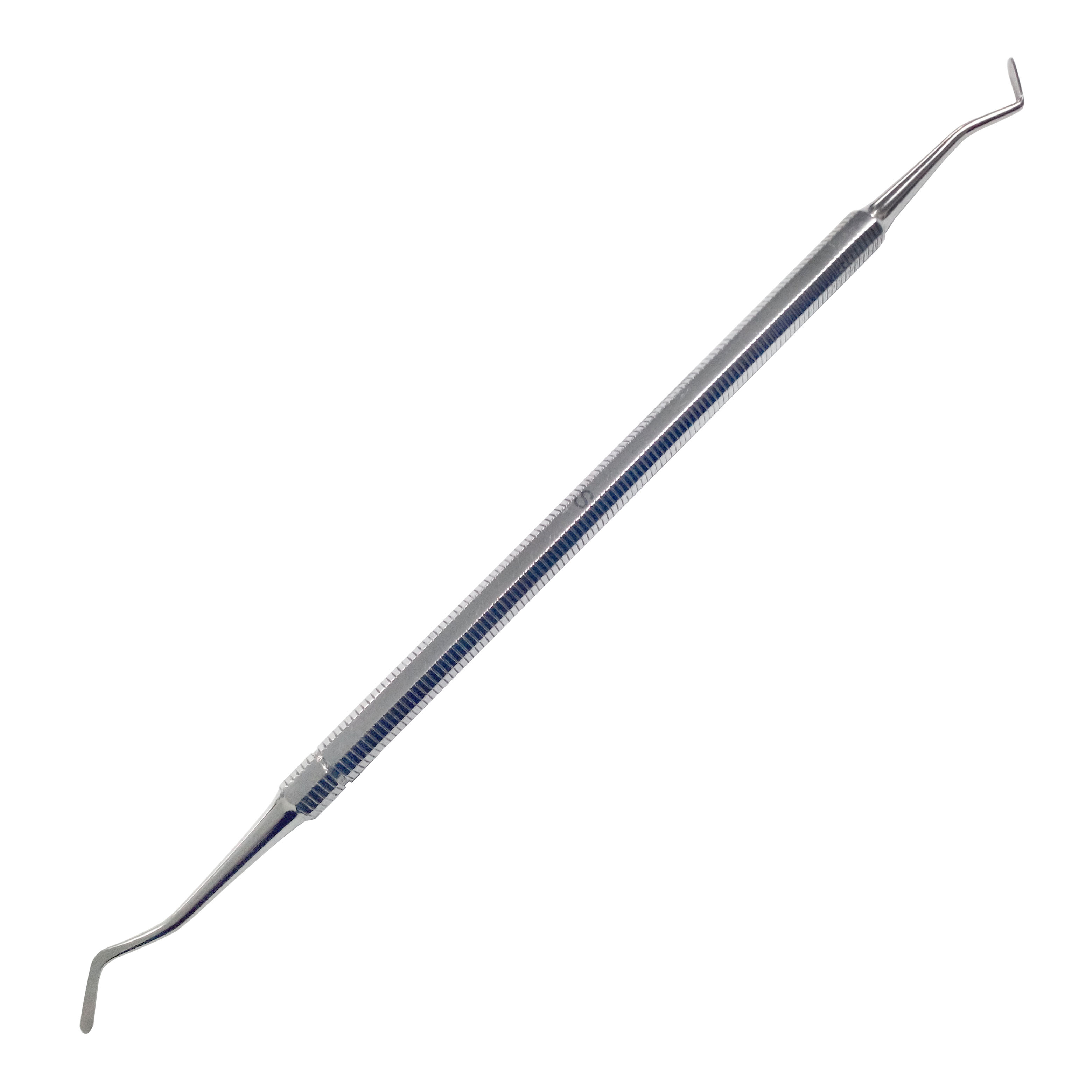 Шпатель стоматологический, двусторонний, жесткий, с восьмигранной ручкой, серповидный и дистальный, покрытый оловом SURGIWELOMED. Ширина 1,7 мм. Длина 170 мм