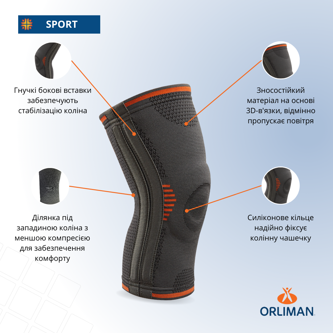 Описание Спортивний напівжорсткий наколінник із пластиковими бічними вставками OS6212