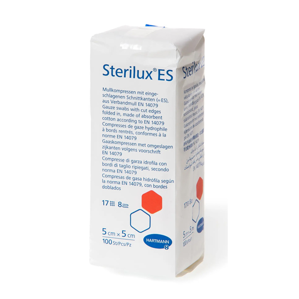 Марлевые салфетки Sterilux ES с подвернутыми обрезными кромками из абсорбирующей хлопчатобумажной ткани в соответствии со стандартами EN 14079. Используются для универсального ухода за ранами – особенно для первой обработки загрязненных, инфицированных и сильно экссудирующих ран в виде тампона. Также они используются для небольших хирургических процедур в амбулаторных условиях и больнице.