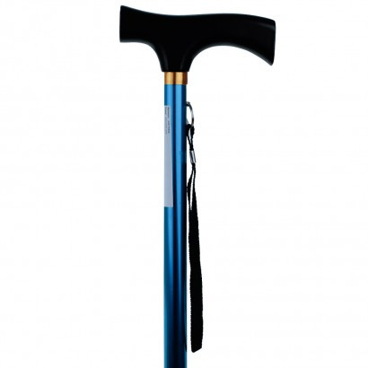 - Регулируемая алюминиевая трость бирюзового цвета.