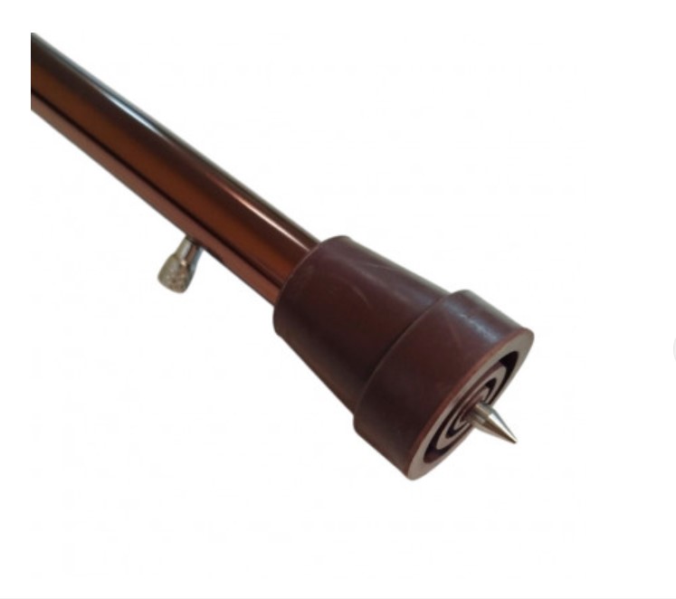 - Трость оснащена специальным механизмом с выдвижным шипом, который обеспечивает дополнительную стойкость и безопасность на скользких поверхностях. Надежный металлический фиксатор удерживает шип в выбранном положении.