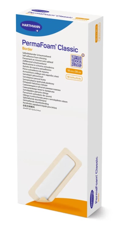 Опис Самоклеюча губчаста пов'язка PermaFoam® Classic Border 10см x 30см