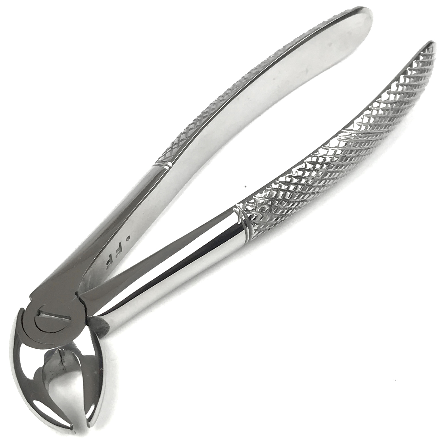 Опис Щипці для видалення молочних різців нижньої щелепи №38. Довжина 14 см, ширина 5 мм