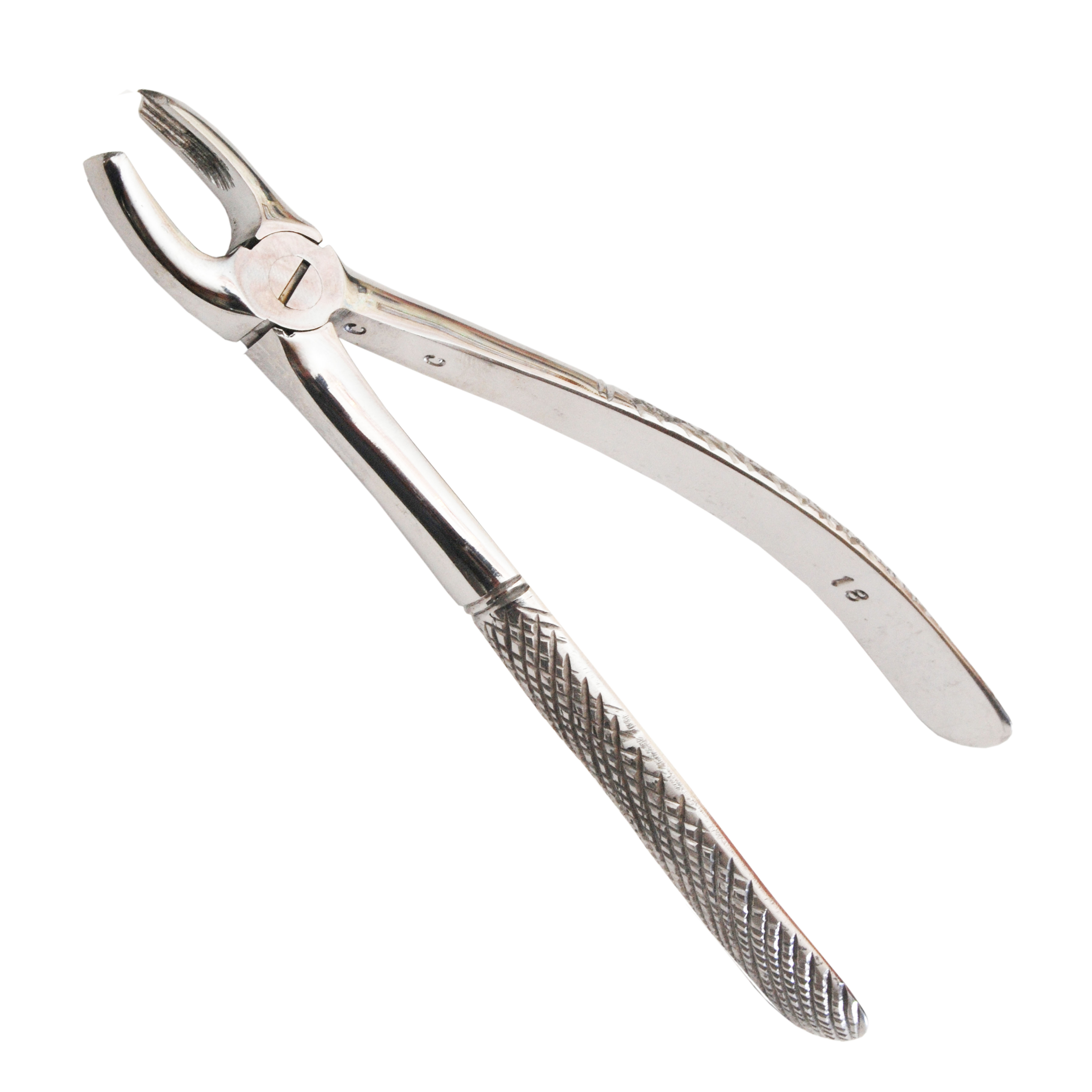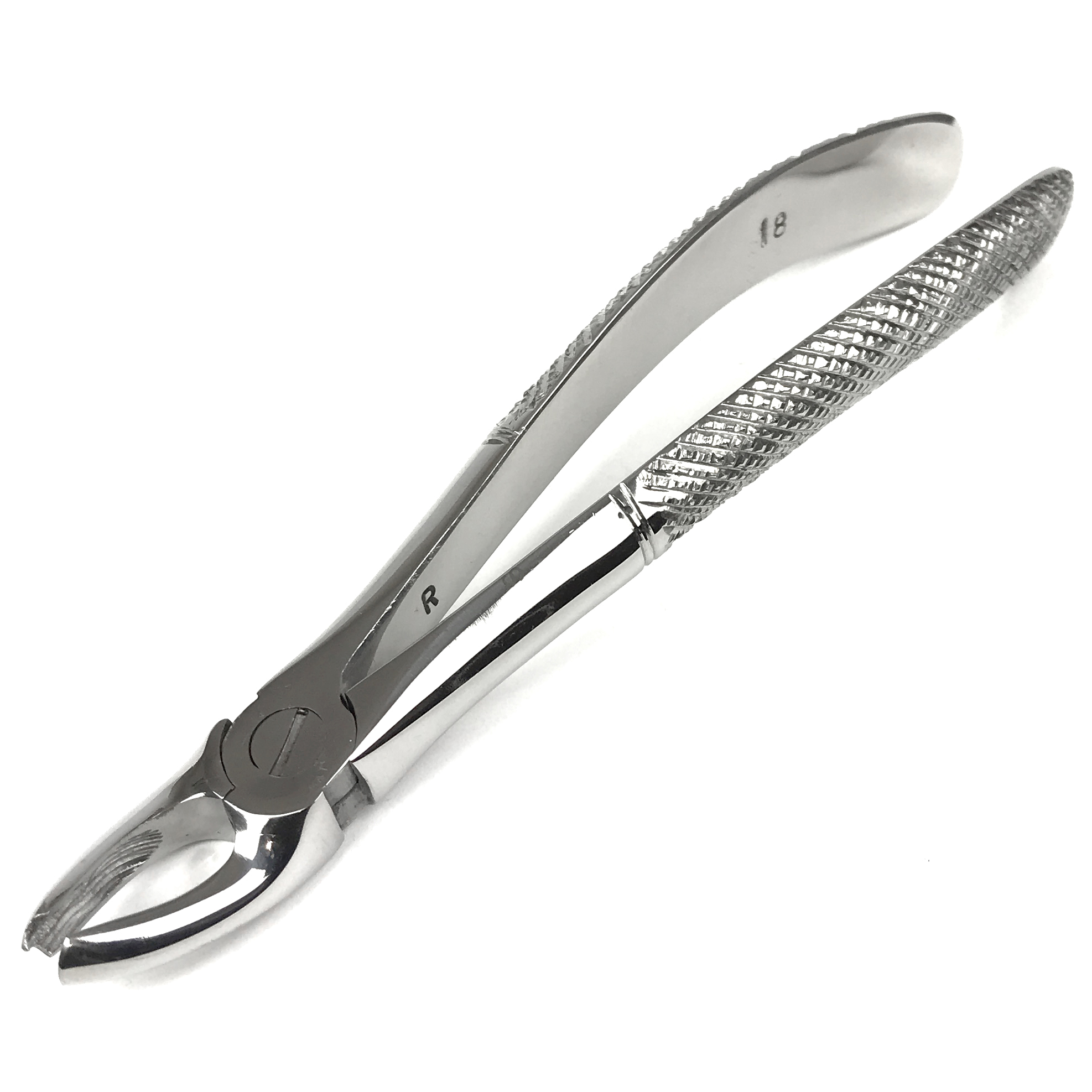 Опис Щипці для видалення молярів верхньої щелепи лівої сторони №18. Довжина 16,5 см, ширина 8 мм