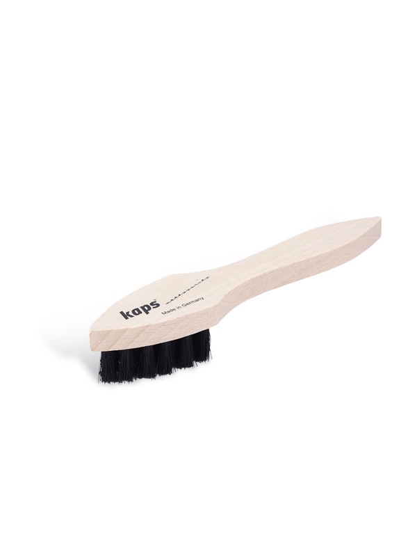Застосування щітки для догляду за взуттям: нанесіть невелику кількість крему на щітку. Потім круговими рухами нанесіть тонкий шар пасти на верх взуття, приділяючи особливу увагу рівномірному покриттю пастою шкіри. Завдяки гнучкості щетини щітка вводить засіб для догляду за взуттям у всі шви, борозенки та поглиблення. Після нанесення крему дайте взуттю висохнути кілька хвилин, потім відполіруйте його полірувальною щіткою.