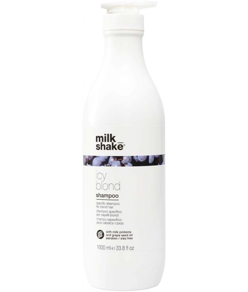 Шампунь milk_shake icy blond - це спеціальний шампунь для світлого волосся. Спеціальний чорний пігмент, що міститься в лінійці milk_shake icy blond, надає ніжні попелясті тони дуже світлому або платиновому русявому волоссю. Подовжує ефект сивого або сріблястого тонів. Допомагає нейтралізувати та протидіяти небажаним жовтим або мідним тонам у світлому волоссі. Шампунь ідеально підходить для дуже світло-русявого або платинового волосся. Не рекомендується для сивого або білого волосся. Не містить SLES та парабенів.