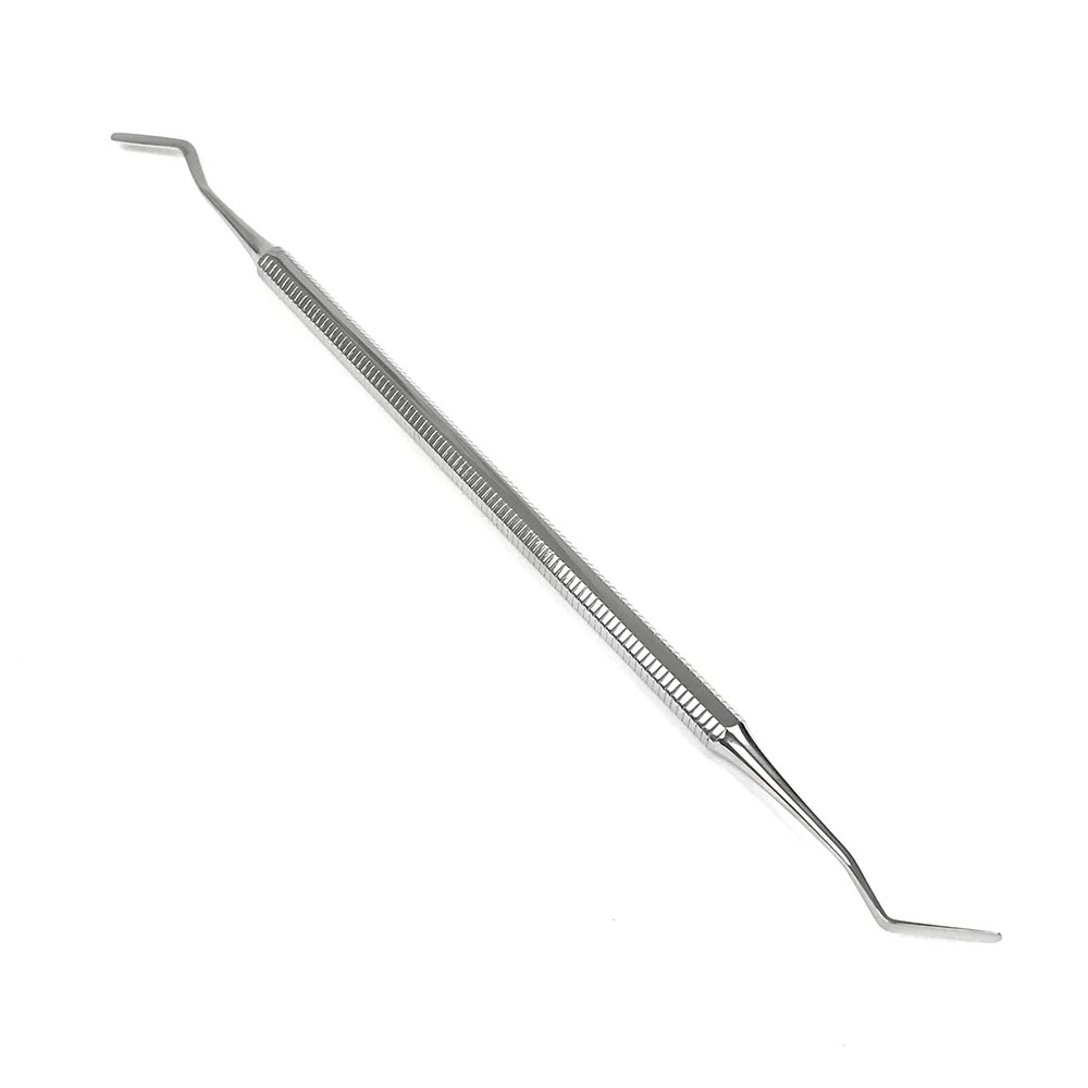 Шпатель стоматологічний, двосторонній, гнучкий, з восьмигранною ручкою, серповидний та дистальний, покритий оловом SURGIWELOMED. Довжина 17,5 см, Ширина 2,5 мм.