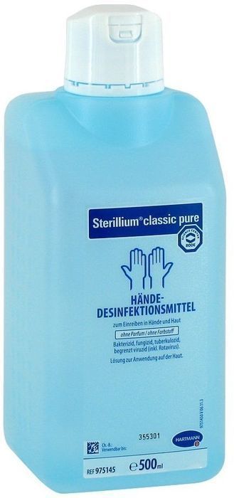 Sterillium® classic pure призначений для гігієнічної та хірургічної обробки рук. Не містить ароматизаторів та барвників, тому може застосовуватися при чутливій шкірі. Sterillium® classic pure добре переноситься і сприяє зволоженню шкіри при регулярному застосуванні.