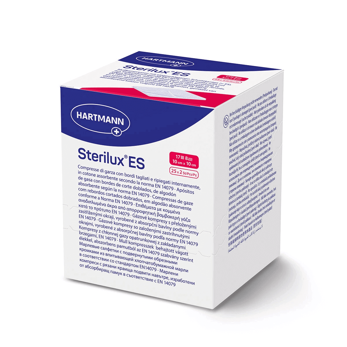 Марлеві серветки Sterilux ES із підвернутими обрізними кромками з абсорбуючої бавовняної тканини відповідно до стандартів EN 14079. Використовуються для універсального догляду за ранами - особливо для першої обробки забруднених, інфікованих і сильно ексудуючих ран у вигляді тампона. Також вони використовуються для невеликих хірургічних процедур в амбулаторних умовах та в лікарні.