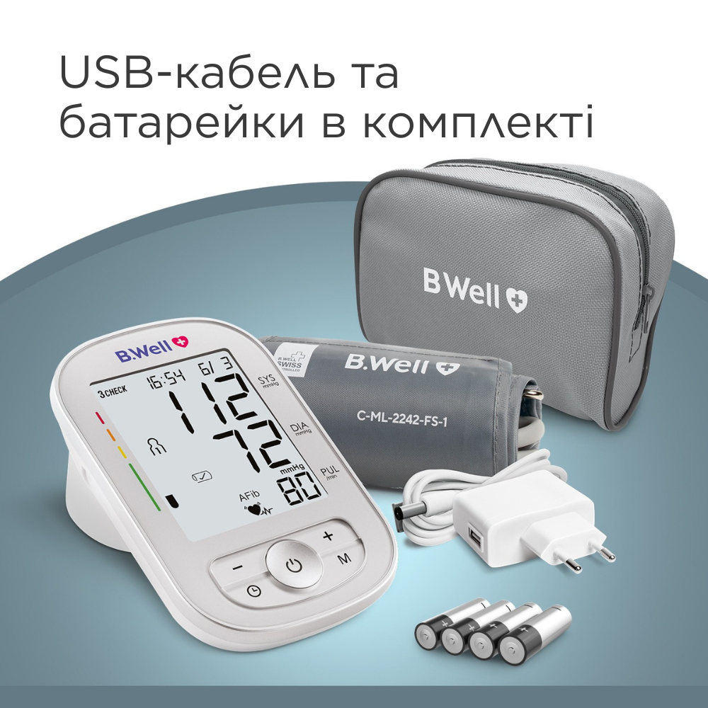 Опис Тонометр автоматичний B.Well TH-75 з виявленням фібриляції передсердь (AFib)