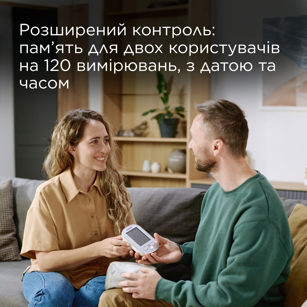 Зберігає до 120 результатів вимірювань для кожного користувача окремо з фіксацією дати та часу, що дозволяє аналізувати динаміку артеріального тиску.