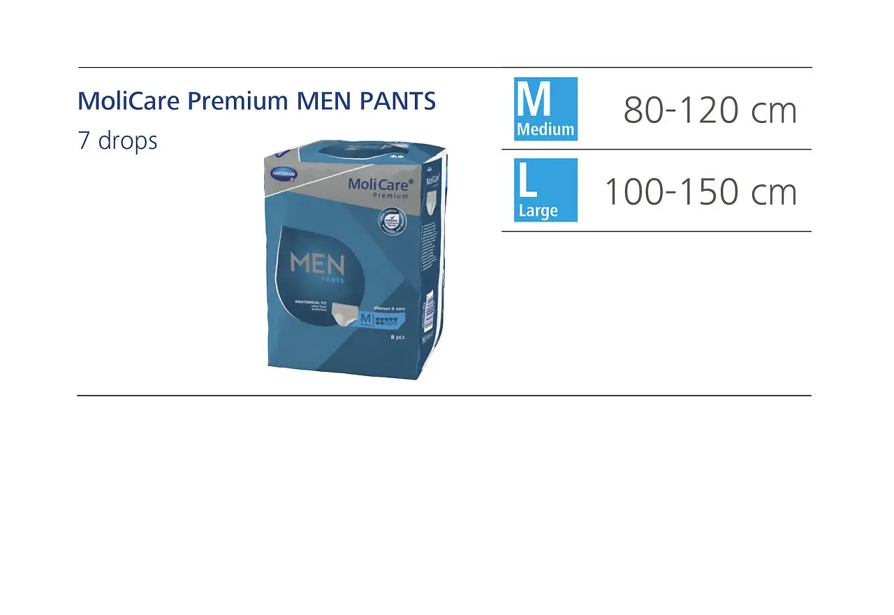 MoliCare Premium Men Pants – це спеціально розроблені підгузки для чоловіків, які забезпечують надійний захист та комфорт при проблемах з нетриманням сечі.