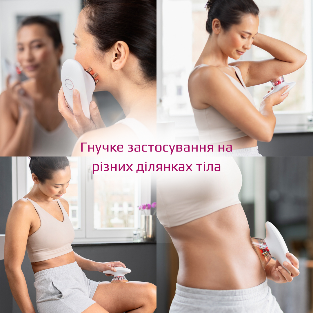 - Комплексний підхід до догляду: вакуум, EMS і червоне світло.