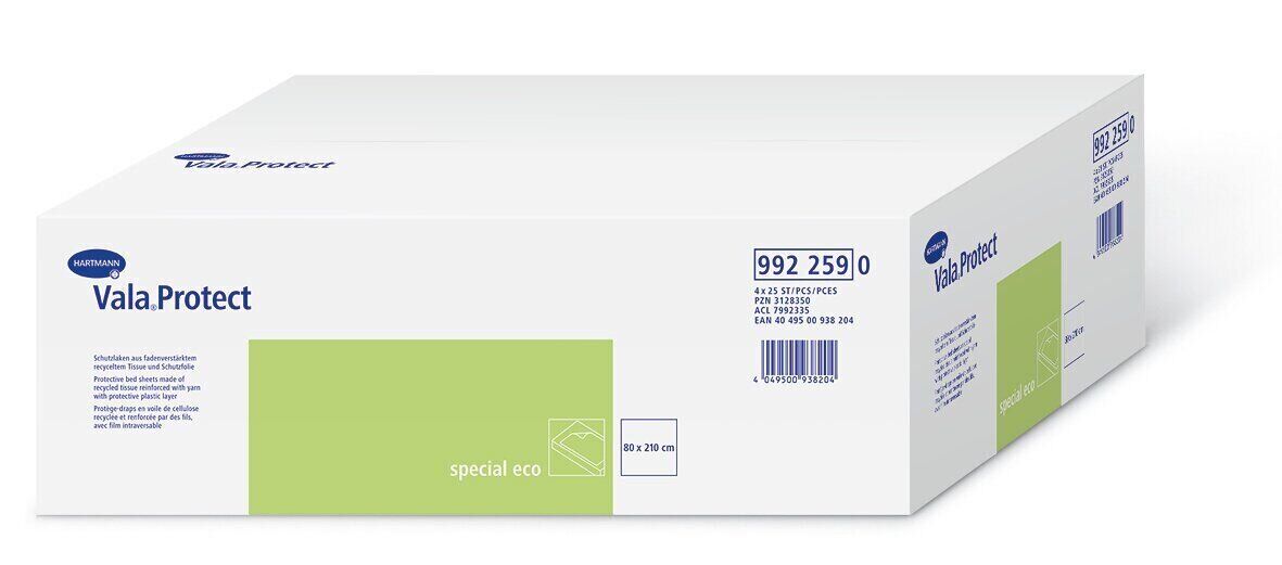 Одноразові захисні простирадла Vala® Protect special eco, зроблені з одношарової тканини, з непроникною поліетиленовою плівкою з нижнього боку. Призначені для захисту ліжок від забруднення і передачі інфекцій. Швидко вбирають вологу і захищають від протікання.