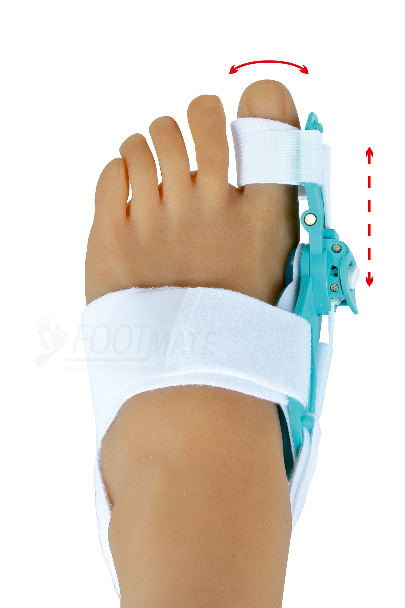 Вальгусна шарнірна шина FootMate Hallux Doctor Gel — інноваційна ортопедична шина для активної та пасивної корекції вальгусної деформації великого пальця стопи. Завдяки унікальному шарнірному механізму з додатковою регуляцією, пристрій забезпечує надійну стабілізацію та поступове виправлення положення пальця як під час ходьби, так і у спокої. М’яке гелеве покриття гарантує комфорт та зменшує тиск на «кісточку», роблячи носіння максимально приємним. Рекомендований для профілактики, щоденного використання та післяопераційної реабілітації.