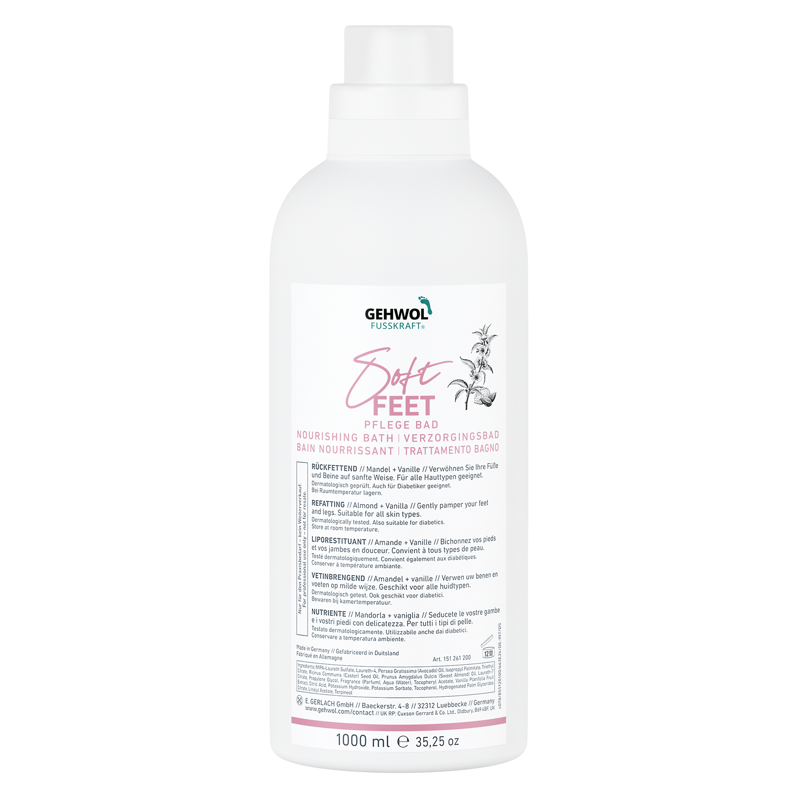 Опис Ванна для ніг Мигдаль та Ваніль Gehwol Fusskraft Soft Feet Nourishing Bath 1000 мл