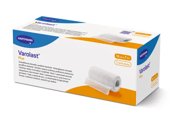 Varolast Plus являє собою одноразовий нестерильний бинт з цинковою масою, який використовується для напівжорсткої підтримки або в якості компресійної ранової пов'язки. Він може застосовуватися для тривалої компресійної терапії при хронічних захворюваннях вен, тромбоемболічних захворюваннях вен і набряках.