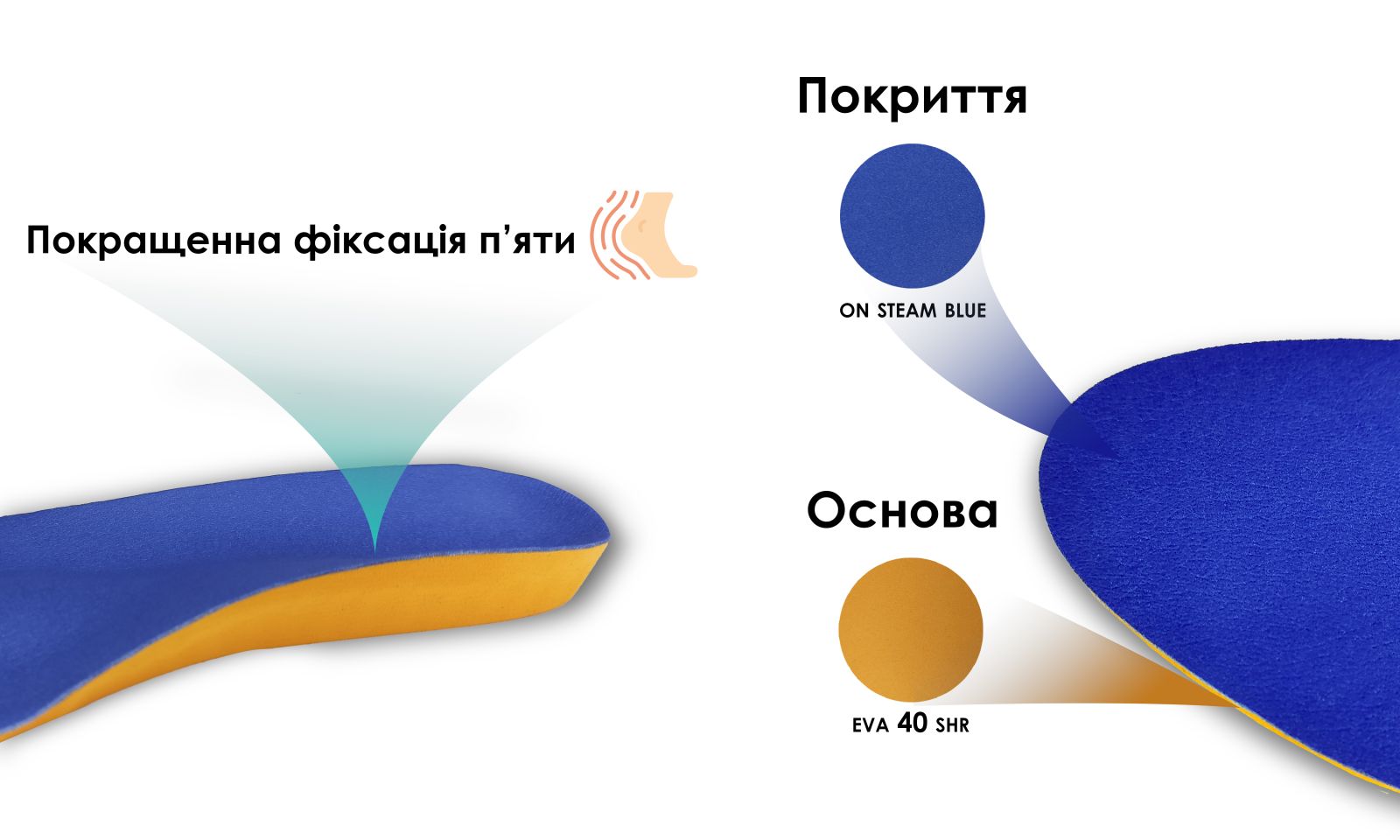 Устілка Classic blue (матеріал покриття мікрофібри ON STEAM синього кольору, основа EVA 40shr. Більш жорстка устілка для кращої підтримки склепіння стопи).