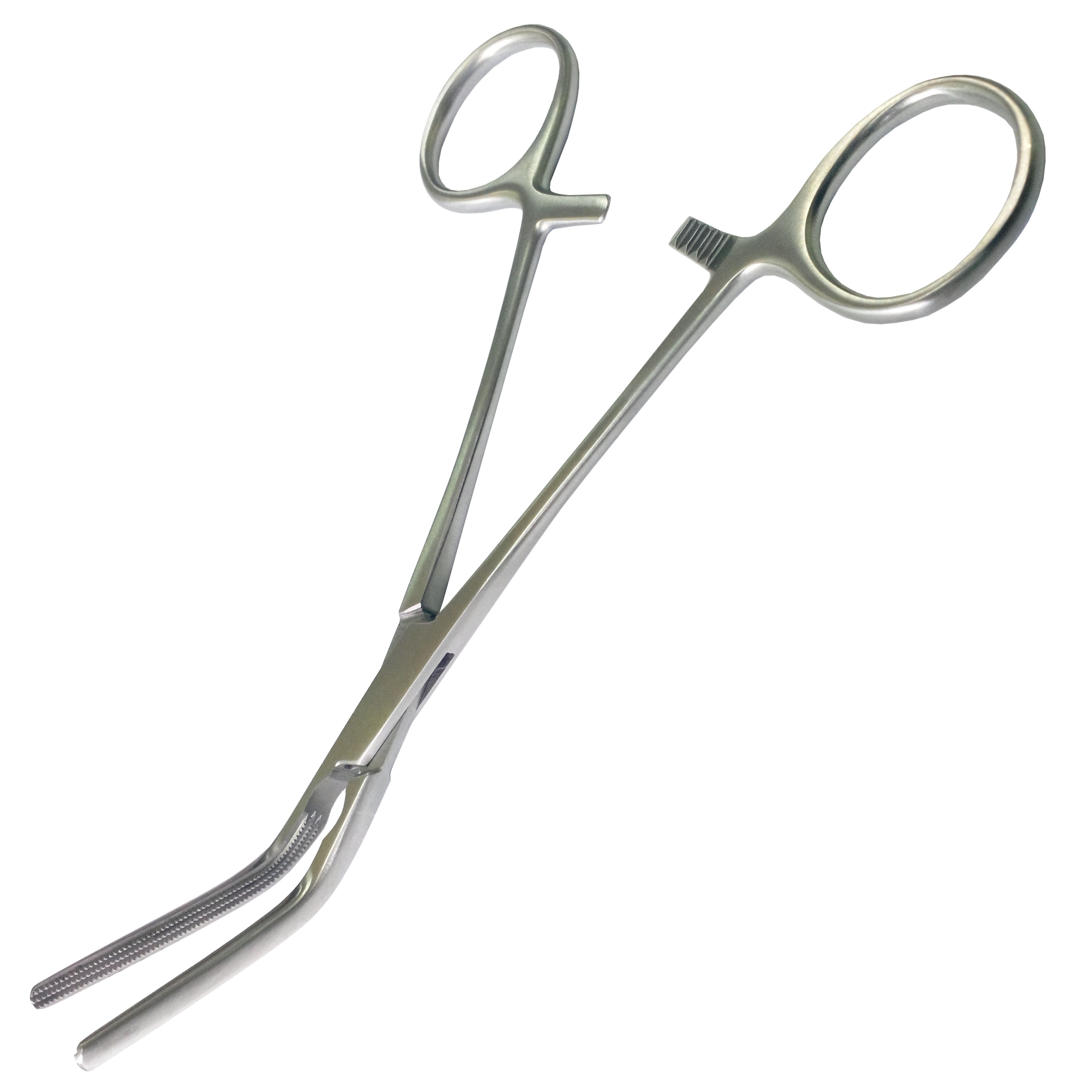Опис Затискач атравматичний зігнутий 45 градусів Surgiwelomed DARDIK, довжина 17 см, р.ч. 65 мм