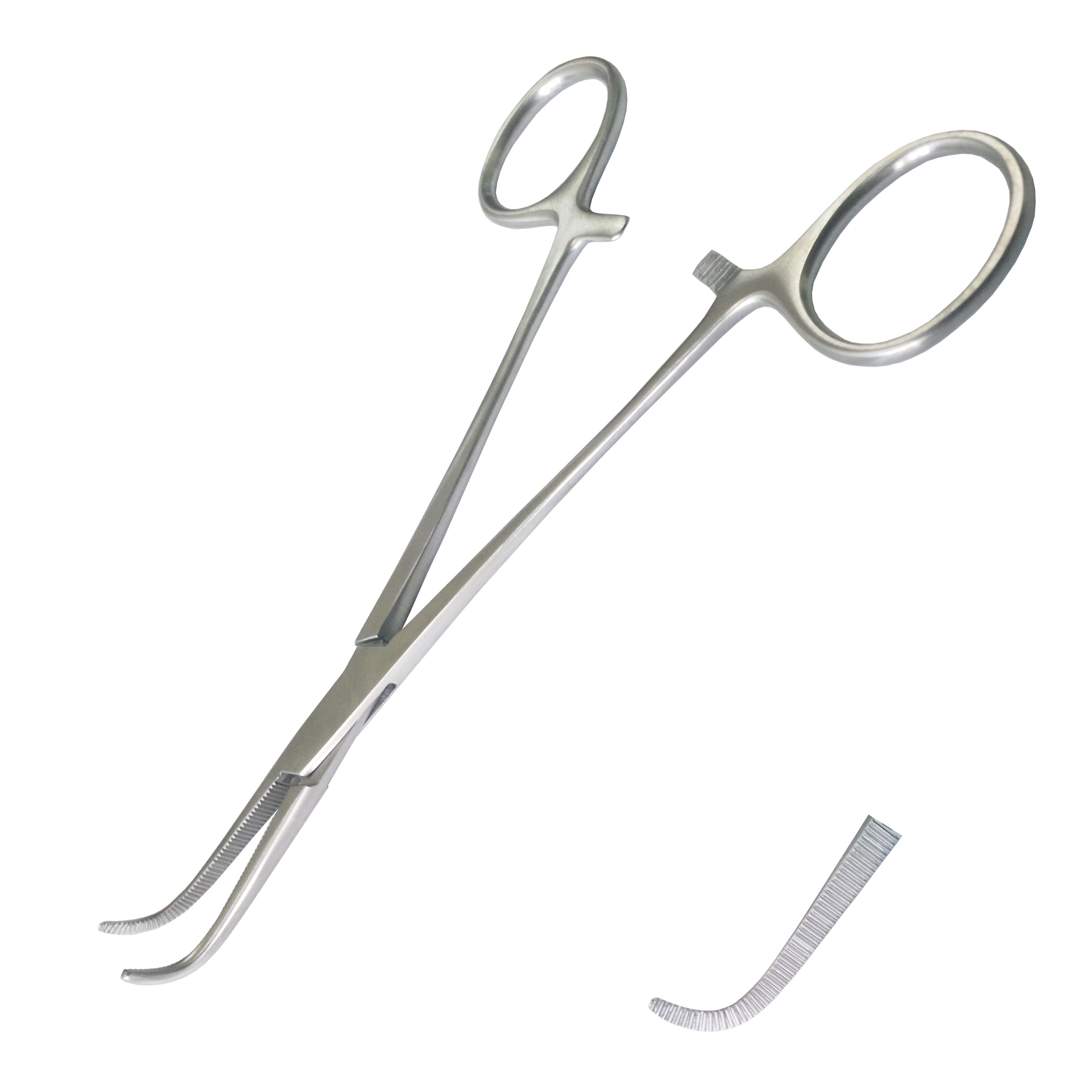 Опис Затискач препаровальний лігатурний зігнутий по Surgiwelomed Gemini. Довжина 16 см, р.ч. 35 мм
