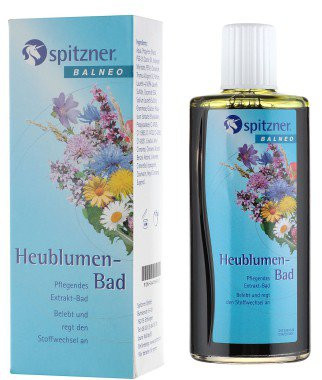 Густий рідкий концентрат для ванн «Польові трави» від компанії Spitzner Arzneimittel містить екстракти та ефірні олії представників царства рослин, відомих активним впливом на епідерміс.