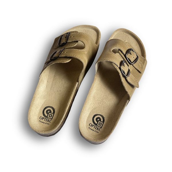 Ортопедичні босоніжки Ортекс Т-13 підходять для ніг з будь-яким підйомом, фіксуються за допомогою шкіряних ремінців з двома регульованими металевими застібками. Мають корковий супінатор спеціальної форми й анатомічну шкіряну устілку для профілактики та лікування всіх видів плоскостопості, а також двоскладову підошву з пробкопласту й мікропористої гуми для зручного повсякденного носіння.