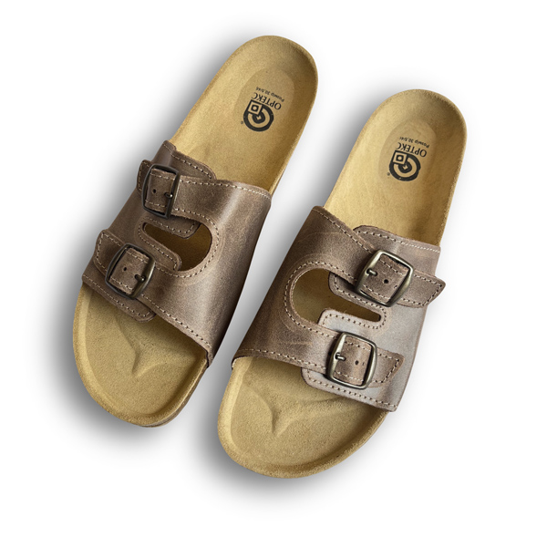 Ортопедичні босоніжки Ортекс Т-13 підходять для ніг з будь-яким підйомом, фіксуються за допомогою шкіряних ремінців з двома регульованими металевими застібками. Мають корковий супінатор спеціальної форми й анатомічну шкіряну устілку для профілактики та лікування всіх видів плоскостопості, а також двоскладову підошву з пробкопласту й мікропористої гуми для зручного повсякденного носіння.