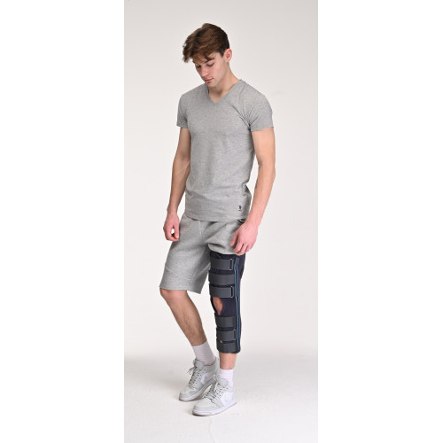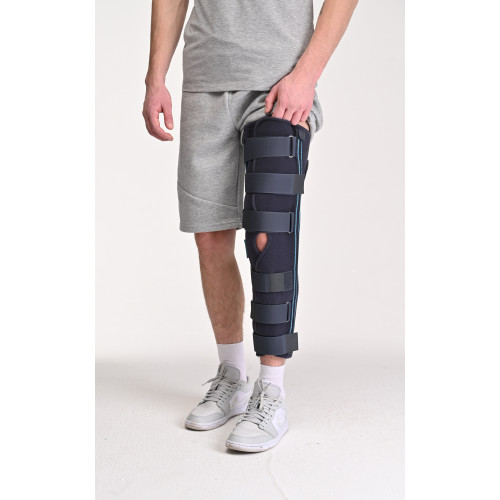 Він використовується як зручна альтернатива гіпсу після операцій на менісках або на колінному суглобі. Ортез забезпечує надійну фіксацію коліна. Порівняно з гіпсом – значно легше та зручніше у використанні, його можна легко знімати та надягати, щоб здійснювати спостереження за перебігом реабілітації або проводити гігієнічні процедури. Матеріал, з якого зроблений тутор, не подразнює шкіру, тому його можна носити тривалий час, не відчуваючи дискомфорту.