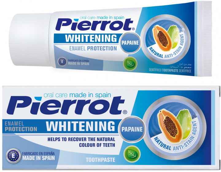 Рекомендуємо цю зубну пасту людям, які однаково піклуються про здоров'я зубів і білизну посмішки. Папайін, що міститься в зубній пасті, відбілює зуби, не пошкоджуючи їх. Тому зубну пасту Pierrot, що відбілює, можна використовувати щодня, не побоюючись за здоров'я своїх зубів. Папайїн перешкоджає забрудненню зубів, має лікувальні антибактеріальні властивості.
